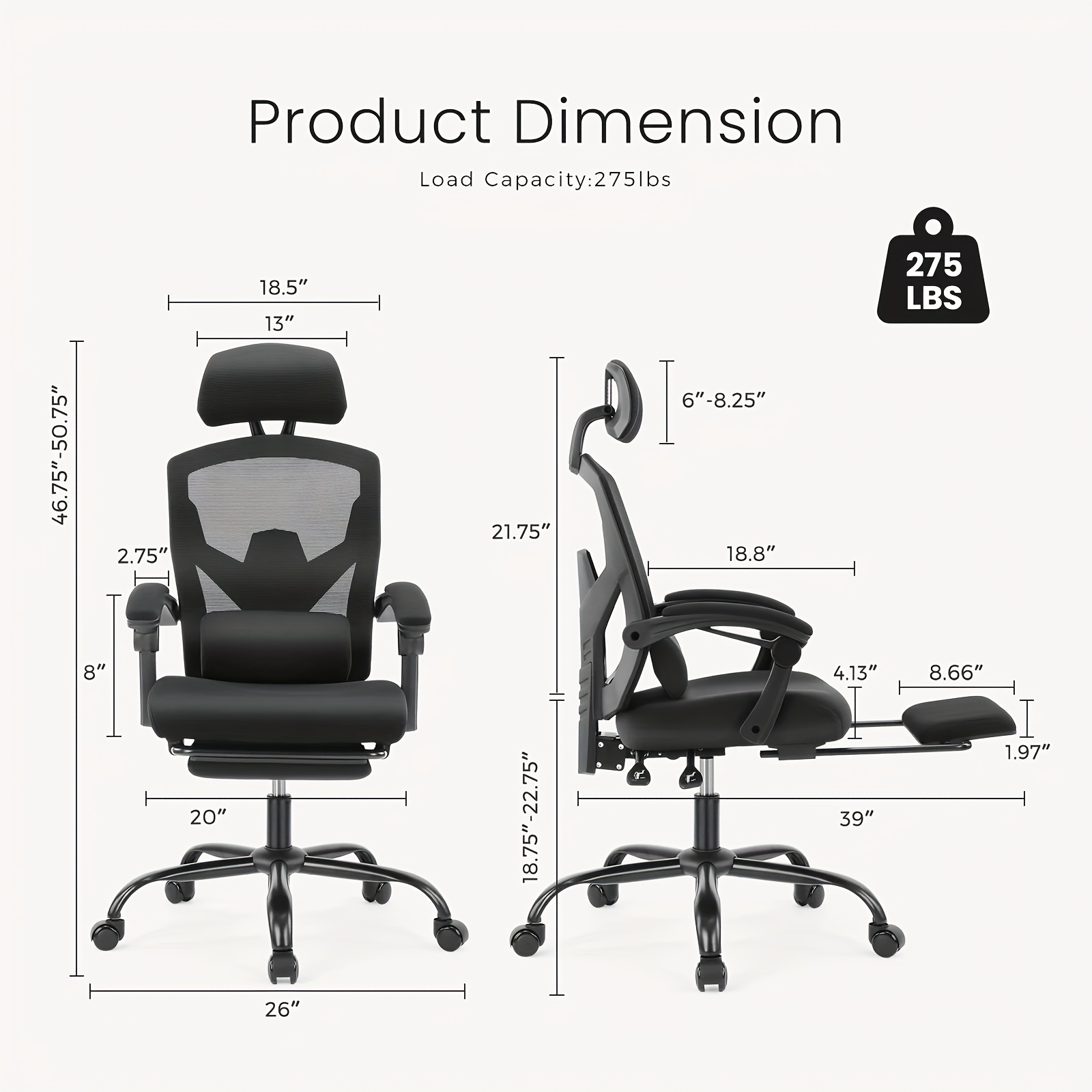 Ergonomic Office Chair - Adjustable Headrest & Backrest, Lumbar Support, Footrest - Comfortable For Home Office & Study
